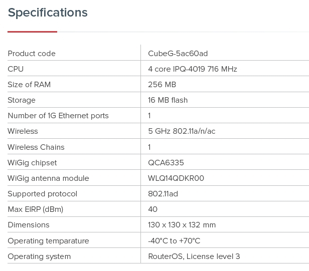 Outdoor jednotka, která v případě instalace v páru nahrazuje gigabitový kabel - jedná se o plně duplexní bezdrátový prvek standardu 802.11ad v bezlicenčním pásmu 60 GHz s 5GHz zálohou .