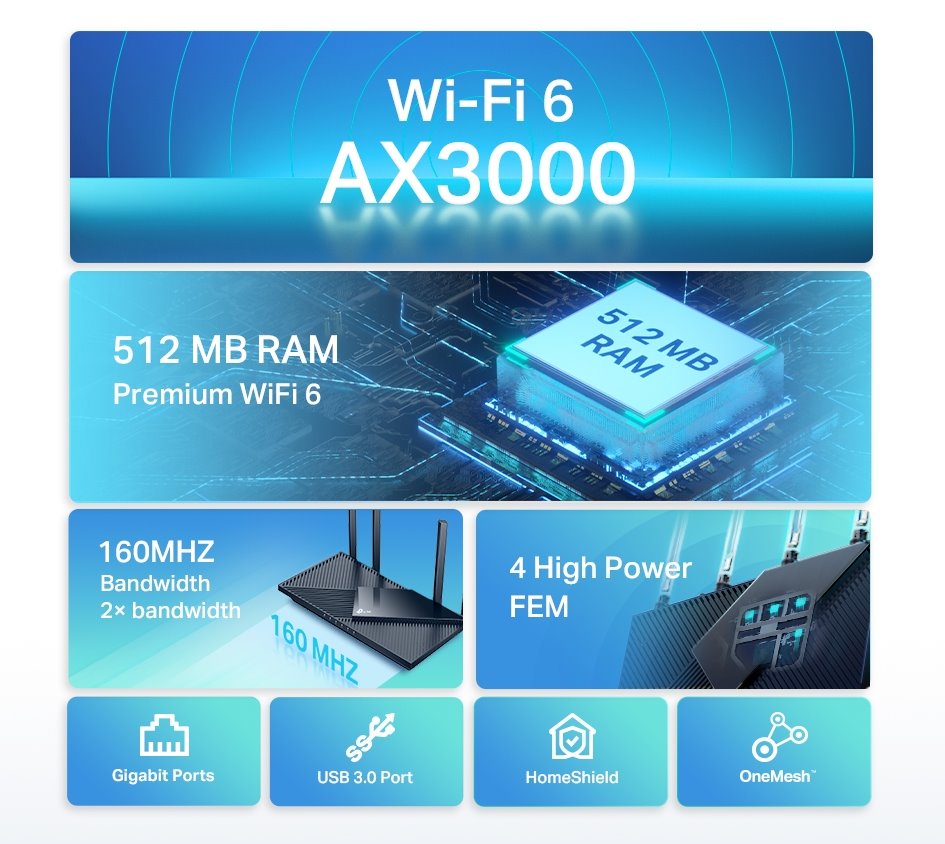 TP-LINK • Archer AX55 • Dvoupásmový gigabitový WiFi 6 router AX3000