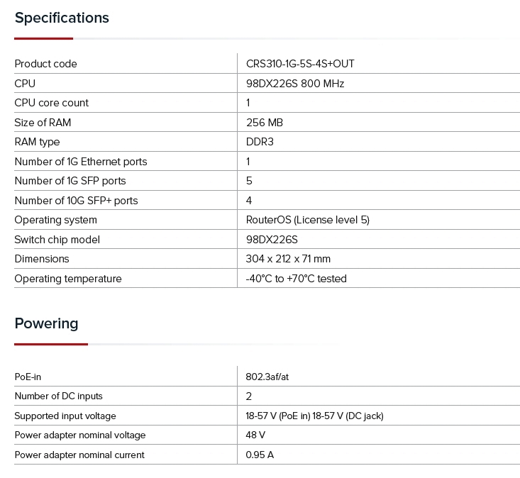 | Part No. | CRS310-1G-5S-4S+OUT | |