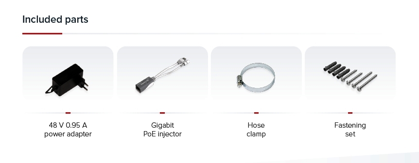 Součástí balení jsou kovové svorky a šrouby, netFiber lze ihned připevnit ke sloupu, zdi nebo stožáru.
