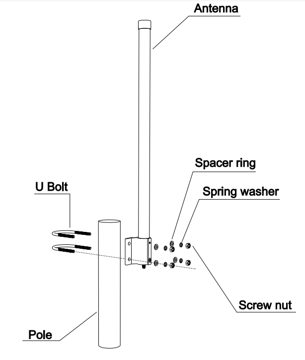 Dodává se s 1 m dlouhým kabelem SMA a mechanickým držákem pro rychlé a snadné upevnění na stožár.