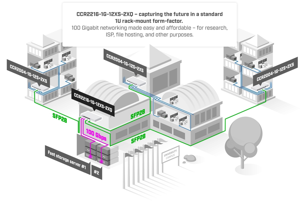 MIKROTIK • CCR2216-1G-12XS-2XQ • 12x 25G SFP28, 2x 100G QSFP28 CloudCore Router
