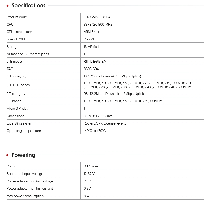 MIKROTIK • LHGGM&EG18-EA • Outdoor LTE jednotka LHG LTE18 kit