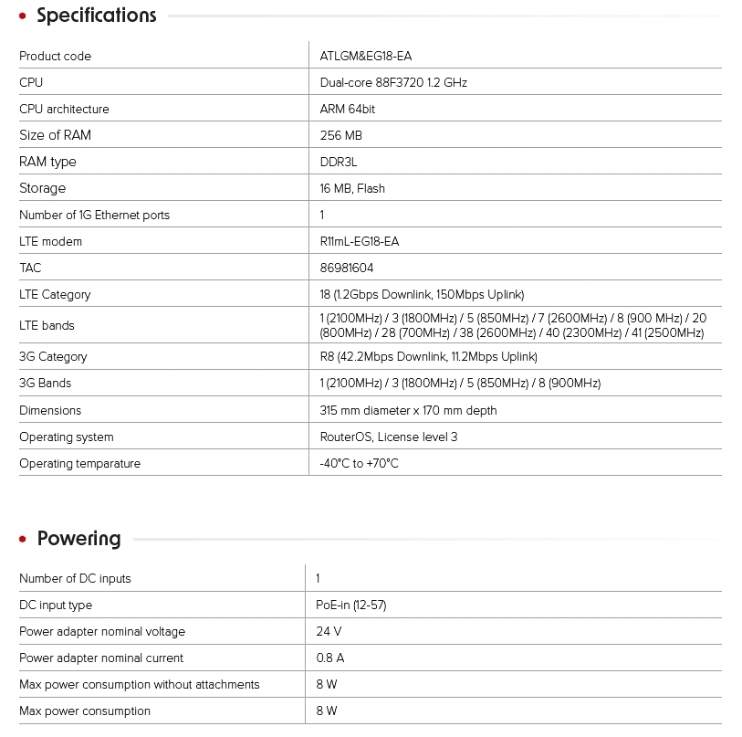 ATL nabízí modem LTE kategorie 18, gigabitový ethernetový port s PoE-in a v kombinaci s moderním ARM CPU, to znamená rychlost až 1 Gbps.