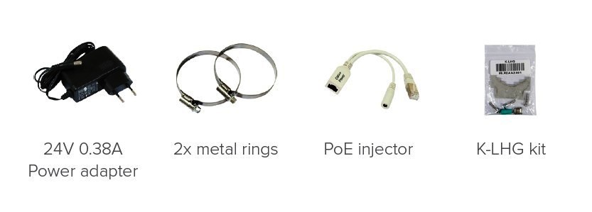 Součástí dodávky je napájecí zdroj 24V 0,8A včetně POE.