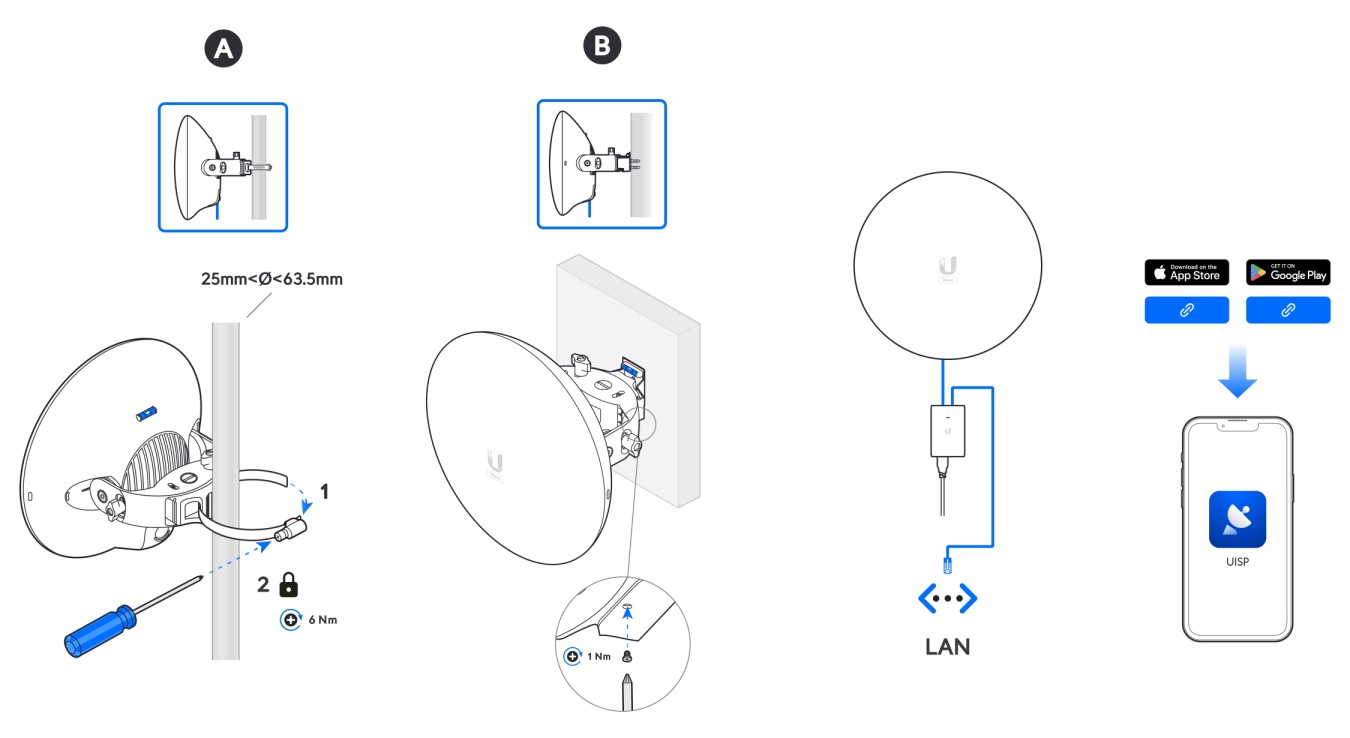 Velice kompaktní a odolný zařízení je také vybaveno integrovanou GPS, Bluetooth pro jednoduché prvotní nastavení z mobilu přes UISP mobilní aplikaci a Gigabitovým LAN portem s podporou PoE.