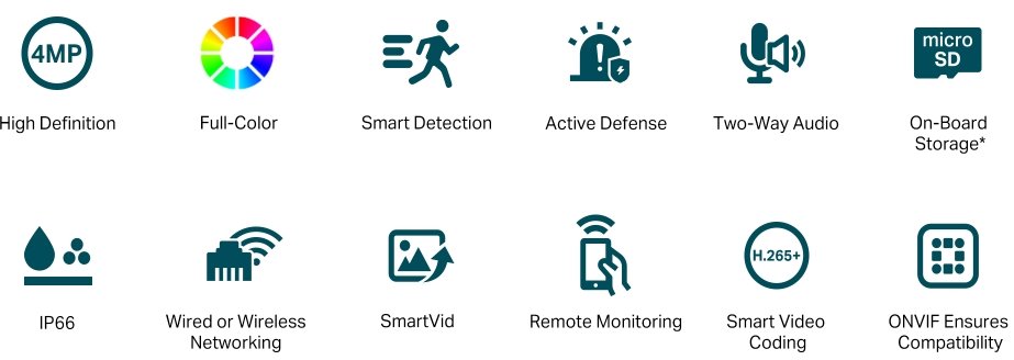 VIGI C340-W(4mm) je 4 megapixelová venkovní WiFi bullet kamera značky TP-Link s fixním objektivem 4 mm, bílým světlem a IR přísvitem do vzdálenosti 30 m, ethernetovým portem s podporou PoE a 802.11b/g/n WiFi s dvěmi fixními anténami. Kamera má max. rozlišení 2560 × 1440 px (při 30 fps), pozorovací úhel 79°, 2 nezávislé streamy, krytí IP66, digitální WDR snímač, obousměrné audio (mikrofon i reproduktor), slot na microSD kartu a podporu ONVIF a kodeku H.264(+) a H.265(+). Kamera díky větší citlivosti podporuje tzv. Full-Color barevný obraz během celé noci.