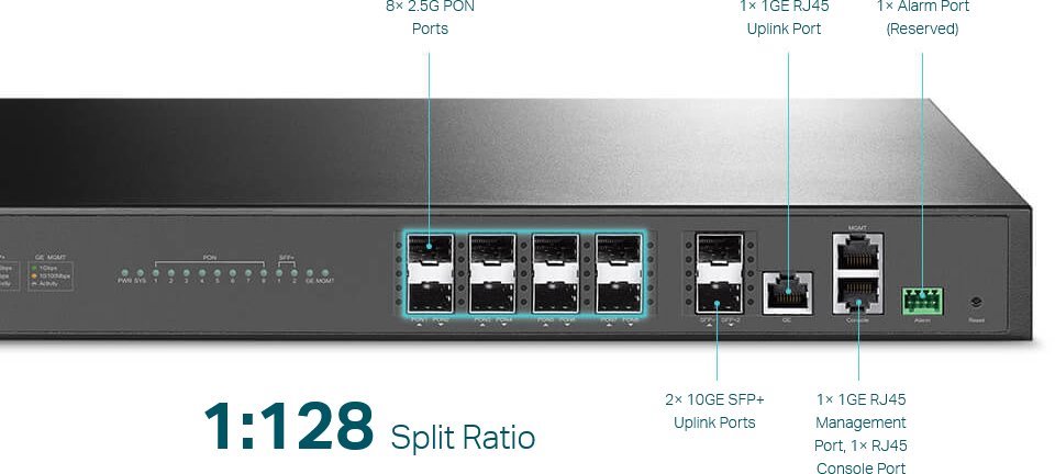 8 portové OLT typu Pizza box se snadnou konfigurací přes webové rozhraní a pokročilými L3 funkcemi. Zařízení lze konfigurovat i pomoci CLI (SSH/Telnet)