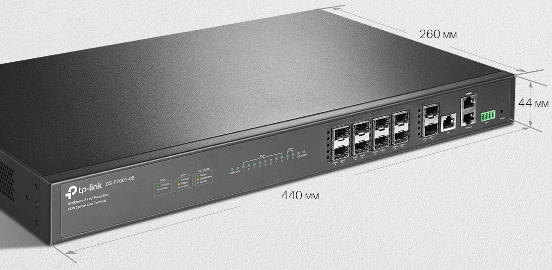 TP-LINK • DS-P7001-08 • OLT TP-Link DS-P7001-08 DeltaStream, 8-port GPON, 4x GLAN, 2x SFP+
