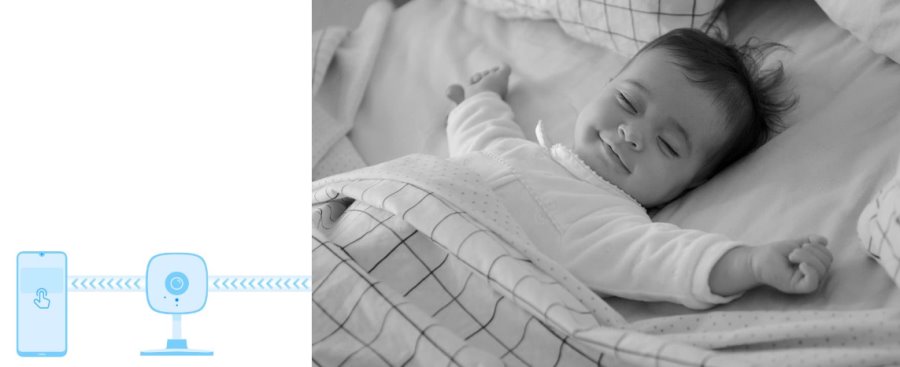 Nebuďte své děti zbytečným otevíráním dveří do jejich pokoje. Podívejte se přes mobilní telefon na živý obraz s nočním viděním až na 9 metrů.