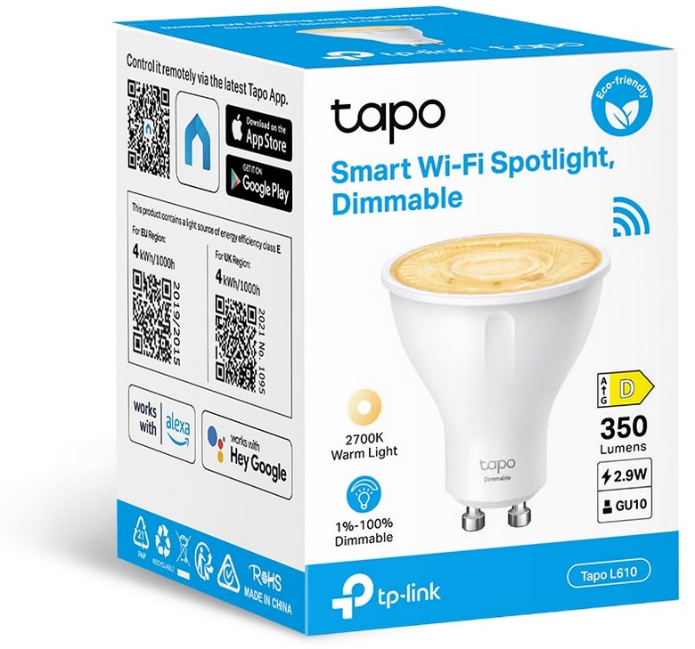 Tapo L610 je chytrá stmívatelná WiFi žárovka s GU10 závitem, barevnou hloubkou 2700K (teplá bílá) a je součástí chytré rodiny Tapo smart home. Tato žárovka má integrovanou WiFi, čímž je neustále spojená s cloudem a je ovládatelná skrze mobilní aplikaci, hlasové příkazy (Amazon Alexa nebo Google Assistant), fyzické přepínače Tapo smart či různé scénáře programovatelné přes mobilní aplikaci.