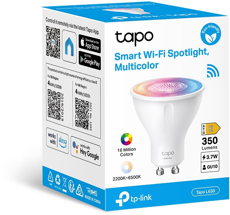 Tapo L630 je chytrá stmívatelná a zároveň barevná WiFi žárovka s GU10 závitem, barevnou hloubkou 2200K - 6500K a je součástí chytré rodiny Tapo smart home. Tato žárovka má integrovanou WiFi, čímž je neustále spojená s cloudem a je ovládatelná skrze mobilní aplikaci, hlasové příkazy (Amazon Alexa nebo Google Assistant), fyzické přepínače Tapo smart či různé scénáře programovatelné přes mobilní aplikaci.