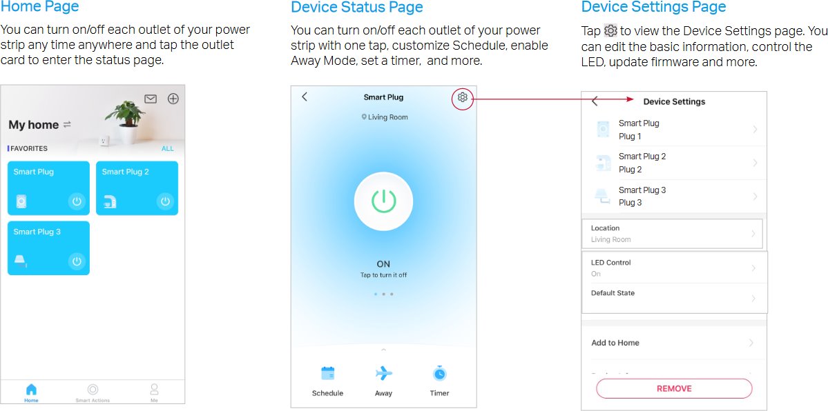 • Vzdálené ovládání – okamžité zapnutí/vypnutí připojených zařízení prostřednictvím aplikace Tapo, ať jste kdekoli.