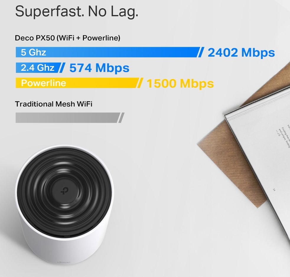 Deco PX50 je nejjednodušší způsob, jak zaručit silný signál Wi-Fi v každém rohu vašeho domova. Bezdrátové připojení a volitelné propojení všech jednotek buď ethernetovým kabelem, bezdrátově, pomocí powerline nebo kombinovaně poskytují ještě vyšší síťovou rychlost a skutečně bezproblémové pokrytí. Chcete více pokrytí? Stačí přidat další jednotku Deco.