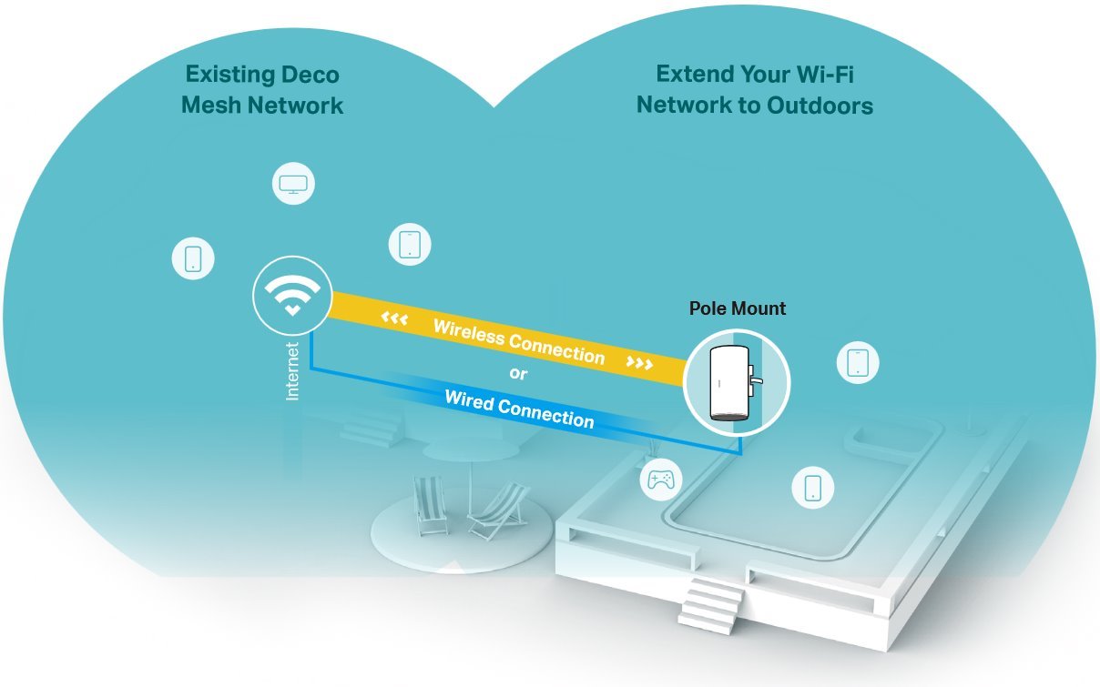 Deco X50-Outdoor je první venkovní jednotka z oblíbené řady Deco pro zaručeně silný signál Wi-Fi na zahradě či terase vašeho domova. Bezdrátové připojení a volitelné propojení všech jednotek buď ethernetovým kabelem, bezdrátově nebo kombinovaně poskytují