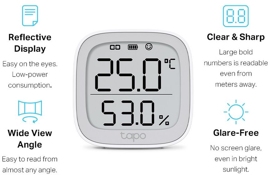 Pusuňte komfort ve vaší domácnosti a nechte automatizaci dělat věci za vás. Díky chytrému Tapo teploměru T315 vždy uvidíte aktuální teplotu i vlhkost na 2,7" LCD displeji typu E-ink. Teploměr je napájen 2× AAA/LR03 baterií s životností až 2 roky, abyste s