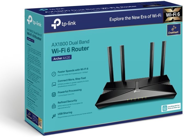 Archer AX23 je Wi-Fi 6 Dual-Band router značky TP-Link, který obsahuje 4× 10/100/1000Mbps LAN , 1× 10/100/1000Mbps WAN a 4 fixní antény. Bezdrátová část umí pracovat ve dvou pásmech zároveň a to rychlostí 574 Mbps ve 2.4 GHz pásmu a 1201 Mbps v pásmu 5...