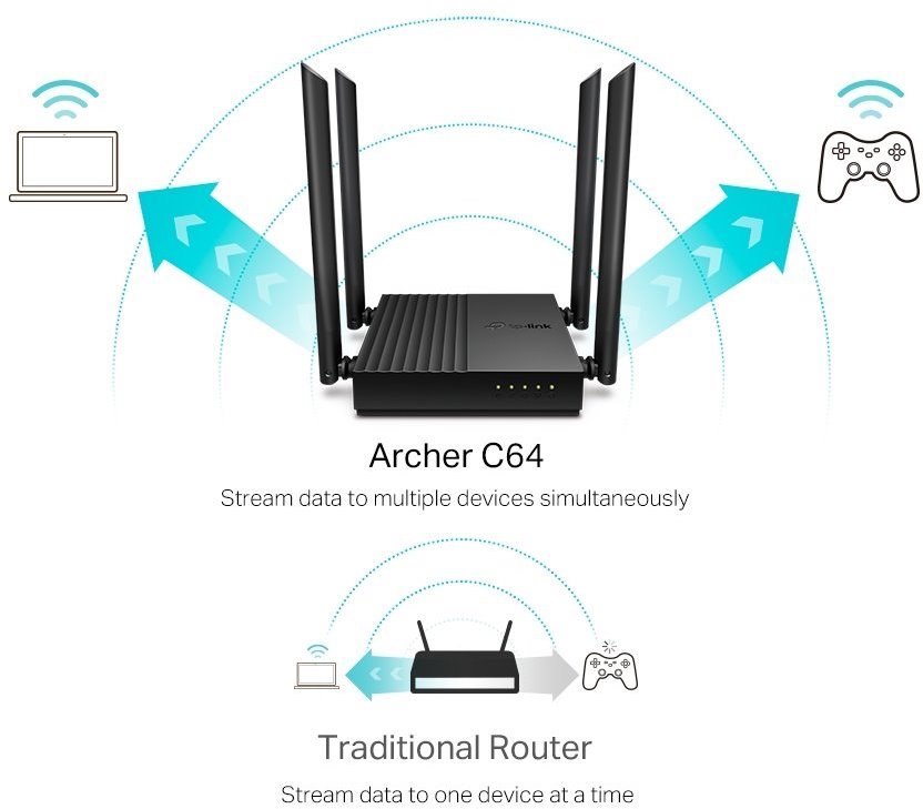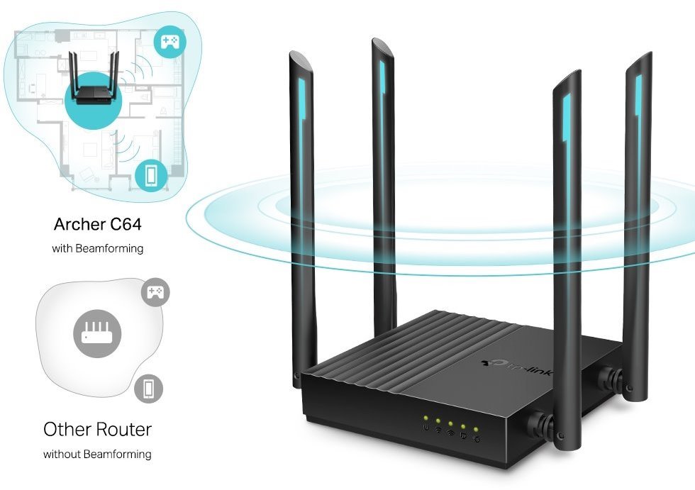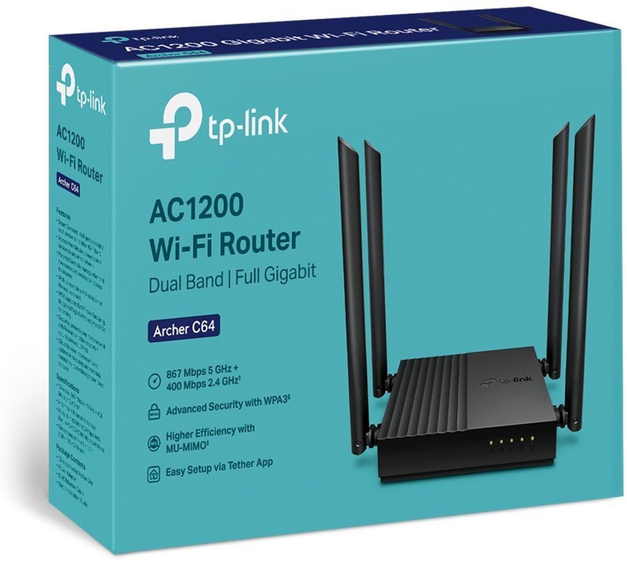 Archer C64 je velmi kompaktní Dual-Band router značky TP-Link, který obsahuje 4× 10/100/1000Mbps LAN, 1× 10/100/1000Mbps WAN a 4 fixní antény. Bezdrátová část umí pracovat ve dvou pásmech zároveň a to rychlostí 400 Mbps ve 2.4 GHz pásmu a 866 Mbps v pásmu 5 GHz. Router podporuje IPv4 i nejnovější IPv6 routování. Router kromě nejvíce používaného modu AP Router podporuje i režim Access point.
