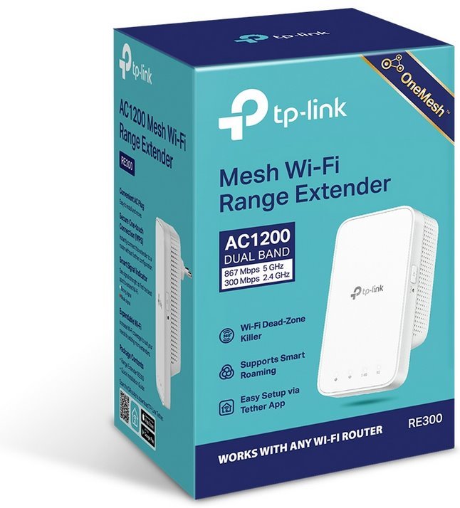 RE300 se bezdrátově připojuje k vašemu routeru, posiluje a rozšiřuje svůj signál do oblastí, kam sám nedosáhne. S rychlostí až 300 Mb/s v pásmu 2,4 GHz a 867 Mbps v pásmu 5 GHz. TP-Link OneMesh™; OneMesh ™ je jednoduchý způsob, jak vytvořit síť Mesh s ...