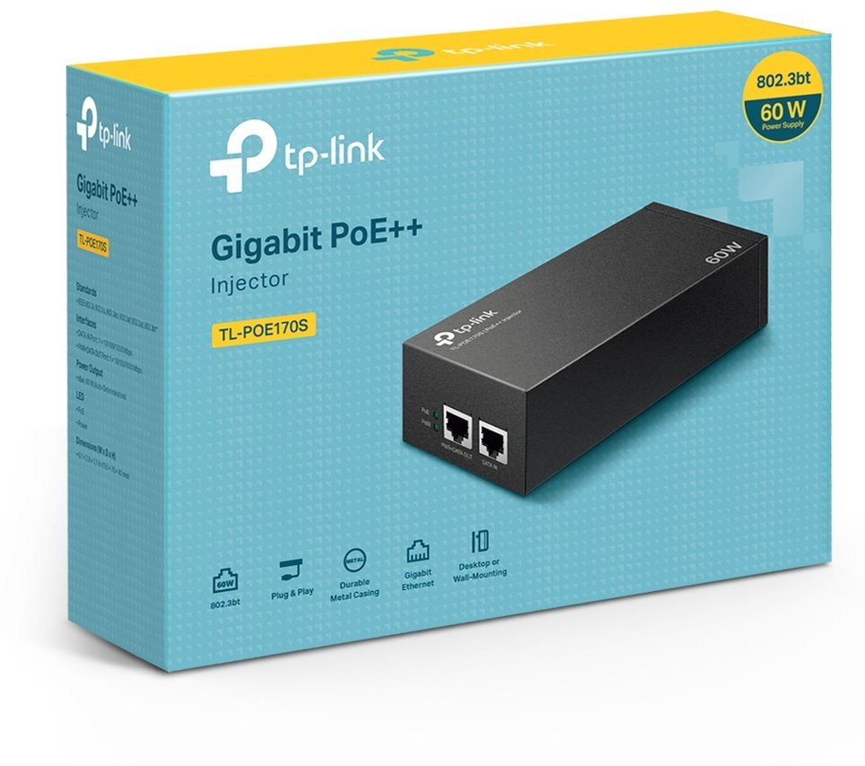 TP-LINK • TL-POE170S • Gigabitový PoE injektor, 802.3af/at/bt, 60W
