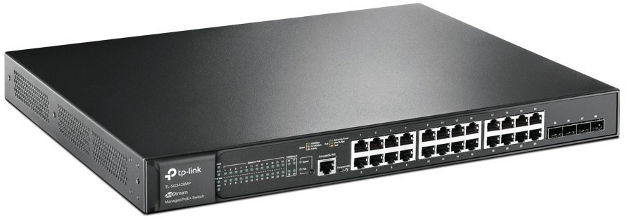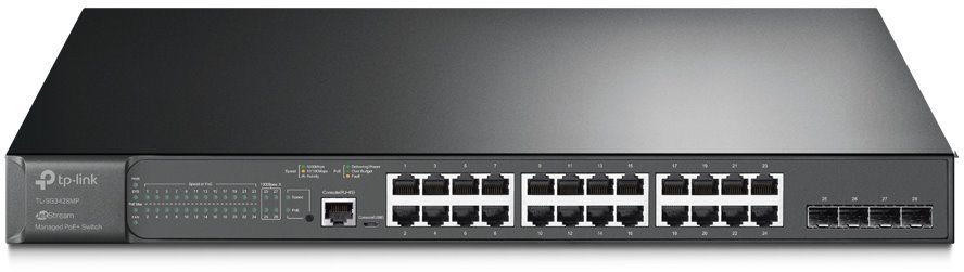 TP-Link TL-SG3428MP je plně managovatelný L2 switch z rodiny JetStream a je vybaven 24 Gigabitovými LAN porty s podporou 802.3af/at PoE, 4x SFP a dvěmi konzolovými porty. Podpora PoE na všech metalických portech umožňuje napájet zařízení se spotřebou až 30W/port a celkový PoE budget switche je 384W. Switch je díky rackmount provedení možné instalovat do 19" racku. Switch nabízí rovněž vysoký výkon, řízení síťového provozu QoS na podnikové úrovni, užitečné strategie zabezpečení a bohaté funkce správy na 2. vrstvě. Samozřejmostí je management, IPv6 support a VLAN.