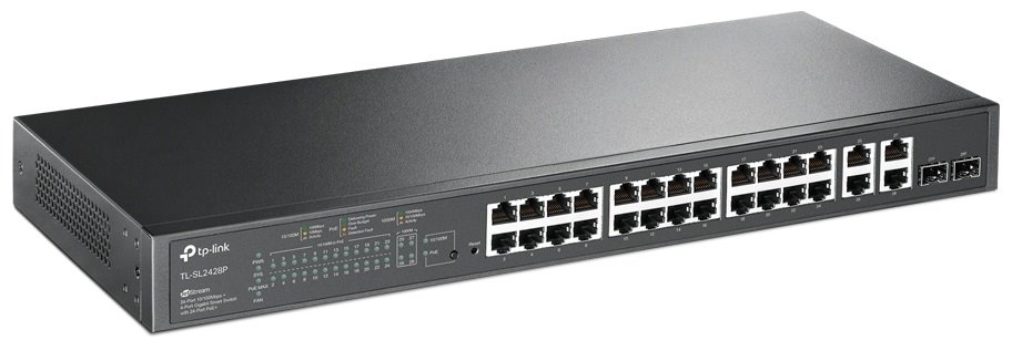 Switch TL-SL2428P nabízí (24) 10/100 Mbps portů, které podporují PoE v souladu se standardem 802.3at/af s celkovým napájením o výkonu 250W. Dostatečně výkonný a flexibilní pro uživatele, kteří chtějí použít přístupové body nebo bezpečnostní IP kamery. Switch je dále vybaven (4) 10/100/1000 Mbps porty RJ45 a (2) Combo SFP sloty, jež rozšiřují flexibilitu sítě. Nabízí rovněž vysoký výkon, řízení síťového provozu QoS na podnikové úrovni, užitečné strategie zabezpečení a bohaté funkce správy na 2. vrstvě. Samozřejmostí je management, IPv6 support a VLAN.