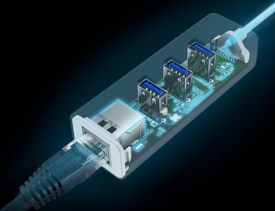 TP-LINK • UE330 • USB 3.0 3-portový hub & gigabitový ethernet adaptér 2 in 1 USB adaptér