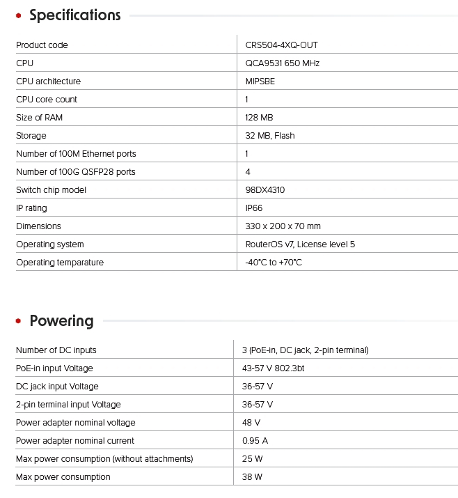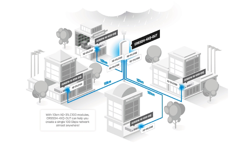 MIKROTIK • CRS504-4XQ-OUT • Venkovní 4-portový 100GB QSFP28 Cloud Router Switch
