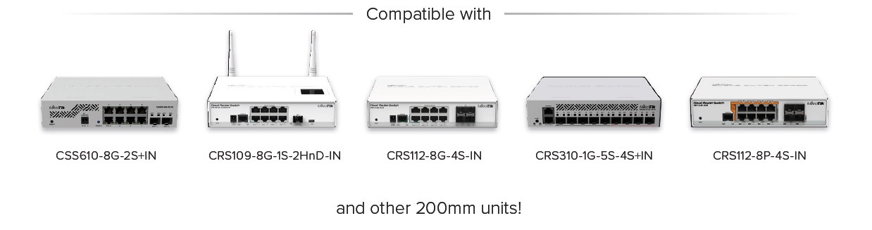 RMK-2/10 umožňuje instalaci dvou menších zařízení MikroTik v tradičních 19palcových stojanech.