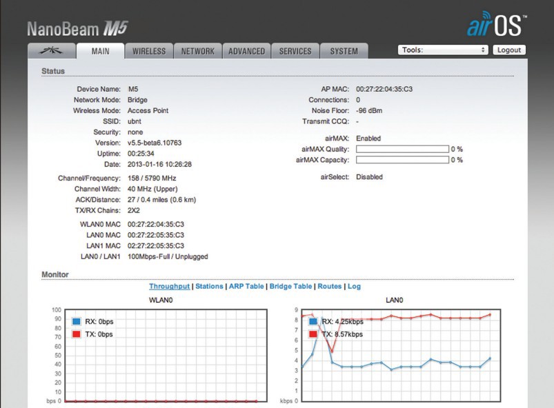 Využívá standard 802.11n a podporuje technologii AirMAX (TDMA) pro vysokorychlostí připojení ve WLAN.