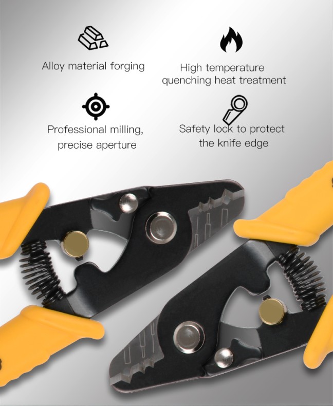Stripovací kleště pro odizolování optických kabelů. Vlastnosti: • žádné poškození vláken, žádné ztráty vláken a žádné zbytky. • přesné tolerance garantující vždy kvalitní výsledek • pohodlné rukojeti z termoplastického elastomeru. • konstrukce se 3 otvory zajišťuje optimální odizolování • odstraňuje 250 um - 3 mm plášť vlákna. • aretační šroub pro optimální funkci • ergonomický design snižující riziko poranění.