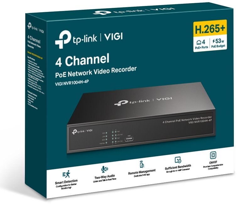TP-LINK • VIGI NVR1004H-4P • NVR, NVR, 4 kanály, 4x PoE