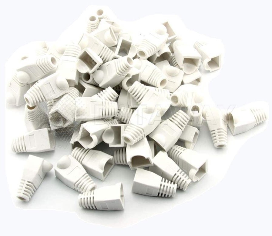 Plastová bílá krytka konektoru RJ-45 pro síťové kabely kategorie CAT5 a CAT6. Balení obsahuje 100kusů.