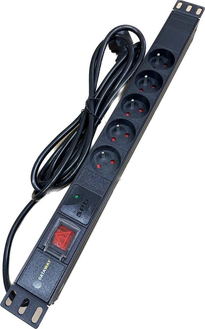 DATAWAY • PDU-5-SP-3M • Přepěťová ochrana 5x 230V, 1U, 19", M6, 3m