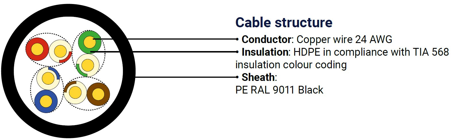 Kvalitní síťové nestíněné kabely pro venkovní použití DATAWAY podporující protokoly 1000Base-Tkategorie CAT5E, s podporou šířky pásma až 100 MHz.