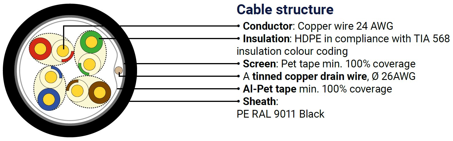 Kvalitní síťové stíněné kabely pro venkovní použití DATAWAY podporující protokoly 1000Base-Tkategorie CAT5E, s podporou šířky pásma až 100 MHz.