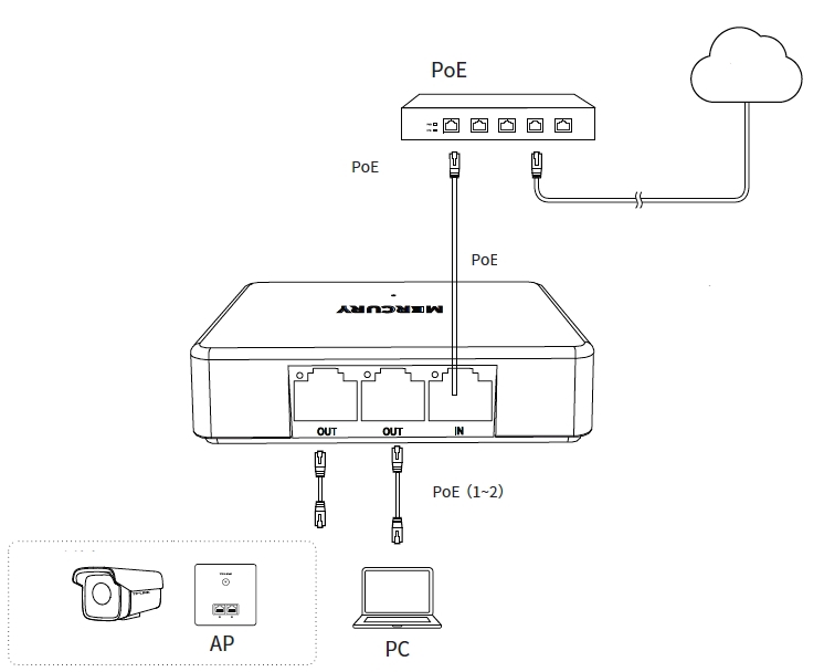 MERCURY • S12P • 802.3af/at 10/100 POE splitter 1:2