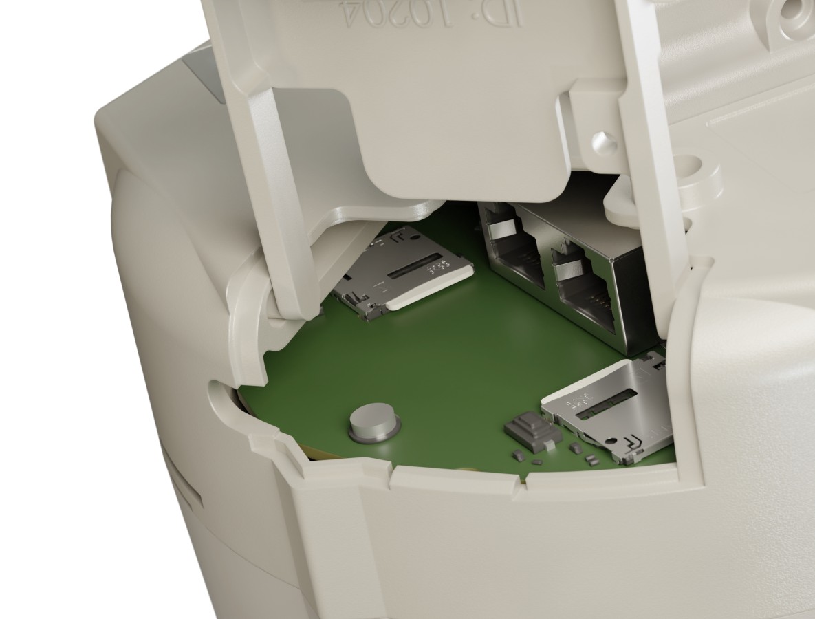 Jednotka je vybavena dvěma porty Ethernet a funkcí PoE: PoE-in na Ether1, PoE-out na Ether2.