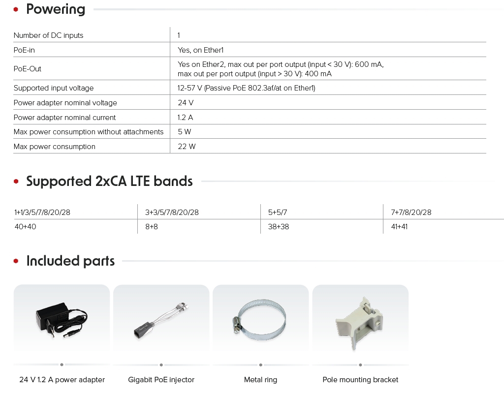 Supported input voltage: 12-57 V (Passive PoE 802.3af/at on Ether1)