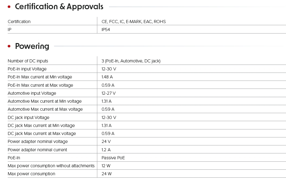 Number of DC inputs: 3 (PoE-In, Automotive, DC jack)