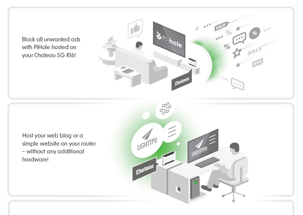 • Blokujte všechny nežádoucí reklamy pomocí PiHole hostovaného na vašem Chateau 5G R16!