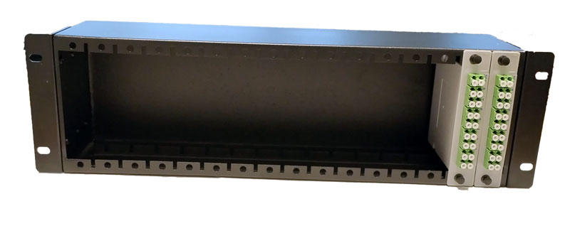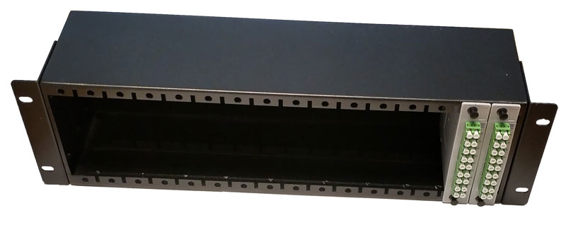 19" montáž do rozvaděče pro PLC splittery umožňuje bezkableovou organizaci PLC splitterů a zvýšení přehlednosti při instalacích.