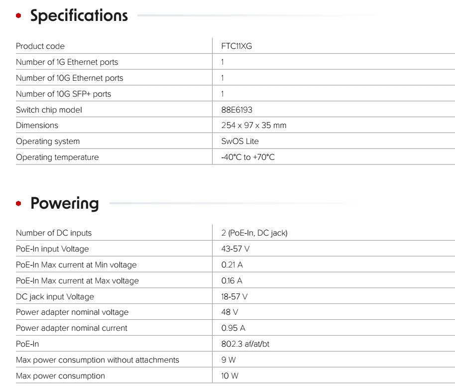 FTC11XG používá plnou verzi systému SwOS Lite a má vlastní přepínací čip, který umožňuje provádět řadu úloh:
