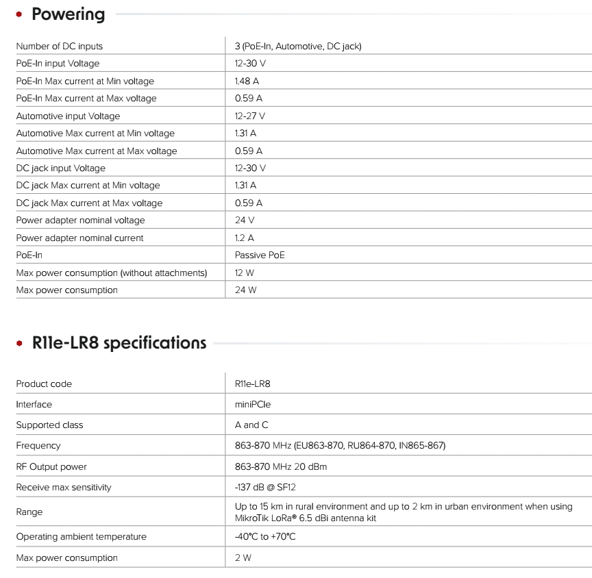 Range Up to 15 km in rural environment and up to 2 km in urban environment when using MikroTik LoRa® 6.5 dBi antenna kit
