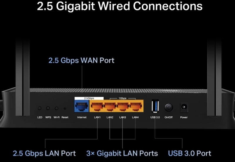 TP-Link Archer BE230 je nový dual-band Wi-Fi 7 router. Pro připojení do sítě je určen WAN port o rychlosti až 2,5 Gb/s. Pro ostatní zařízení je zde 1 LAN port o rychlosti 2,5 Gb/s a 3 LAN porty o rychlosti 1 Gb/s . V pásmu 5 GHz dosahuje rychlosti až 2880