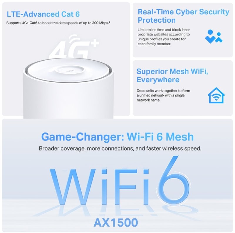 TP-LINK • Deco X10-4G(1-pack) • Modem LTE6 s WiFi routerem, AX1500, WiFi 6, 3x GLAN, 2,4/5GH