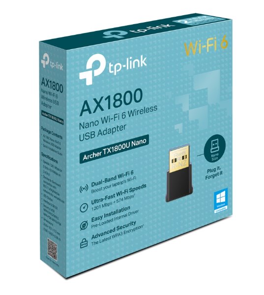 Bezdrátový USB 2.0 adaptér TP-Link Archer TX1800U Nano vám umožní připojit se k bezdrátové síti pomocí Wi-Fi 6 připojení s rychlostí až 1201 Mbps v 5GHz pásmu a 574Mbps v 2,4GHz pásmu. Adaptér podporuje technologie MU-MIMO, OFDMA a nejnovější standard šifrování WPA3. Díky uloženému vlastnímu ovladači je adaptér plug and play a je plně kompatibilní s Windows 10/11.