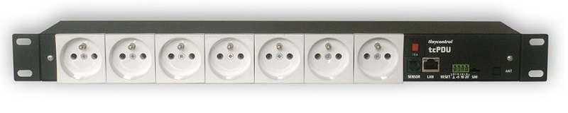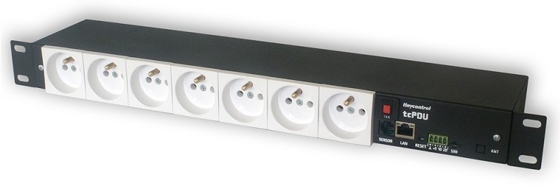 Řízená jednotka distribuce energie ve standardní skříňce Rack 19 palců. Vybaven 7 nezávisle spravovanými zásuvkami připojenými na síťové (230V) napětí. PDU lze spravovat přes vestavěný webový server nebo protokol SNMP nebo MQTT přes fyzické 10/100Mb Ethernet rozhraní.