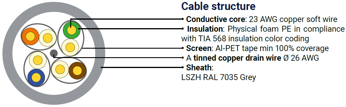 Kvalitní síťové stíněné kabely pro vnitřní použití DATAWAY podporující protokoly 10GBaseT kategorie CAT6A , s podporou šířky pásma až 500 MHz.
