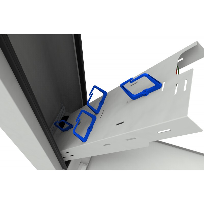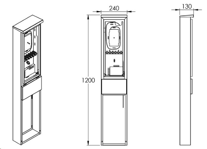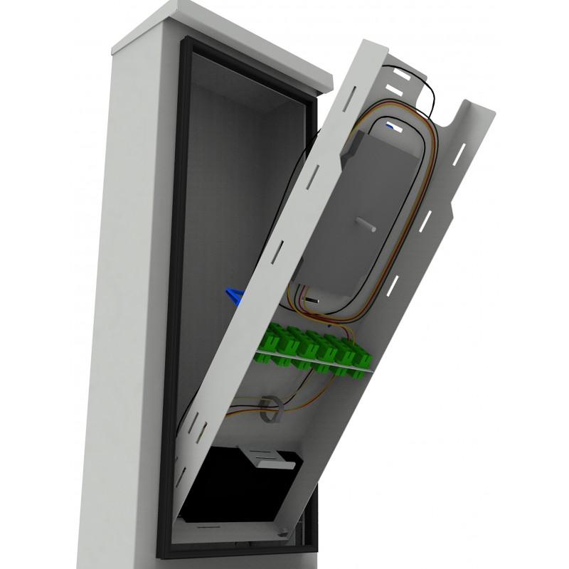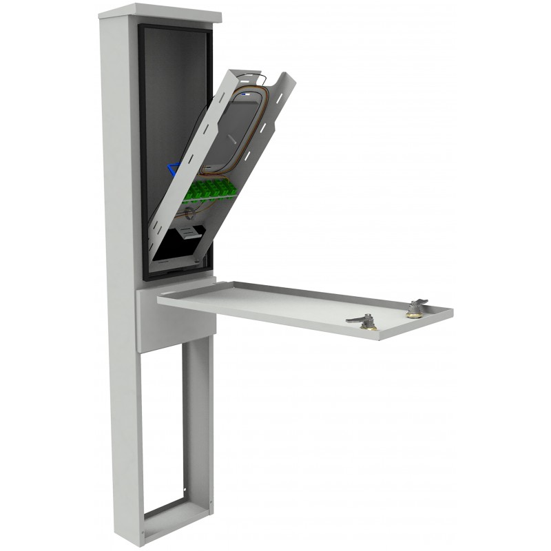 Prostor v zadní části sloupku je vyhrazen pro rezervu optických vláken, což je zásadní pro flexibilitu a snadnou správu sítě. V horní části vložky je prostor pro optické rozbočovače a plastové držáky kabelů, což usnadňuje organizaci a udržování pořádku. Ve spodní části vložky je oddělený prostor. Sloupkové dveře jsou uzamčeny 2 hermetickými cylindrickými zámky, který zajišťuje bezpečnost a ochranu před neoprávněným přístupem.